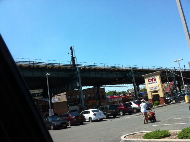 …and on the other side is a CVS store tucked under the elevated tracks of the subway.